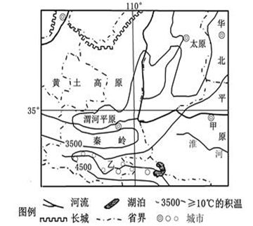 (1)比较渭河平原和秦岭积温(≥10℃)的差异,并分析形成这种差异的主要原因。(4分)