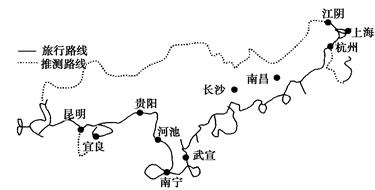 2、单选题 读徐霞客51~55岁旅行路线示意图,回答小题。