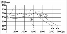 5、单选题  甲、乙两地之间有3条道路。图中3条曲线分别代表3条道路沿道路所经路线海拔高度发生变化的情况。