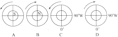 A.悉尼昼长夜短,且夜渐长 B.全球气压带风带向北移动 C.我国冬季风活动频繁 D.我国北方河流进入汛期 3、单选题  下面四幅图能正确表示地球自转方向的是 4、单选题  读北半球四地不同日期的太阳高度日变化示意图,回答下列各题。 |