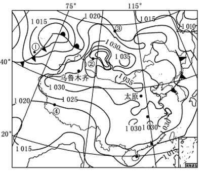 5、单选题 下图是亚洲东部桌区域两个时刻的等压线(单位:百帕)读图回答1—2题。