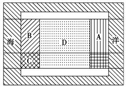 (1)根据题目意思,结合上图可以知道,A大致位于北纬35°-北纬55°之间的大陆东岸,所以是温带季风气候,这种气候的特征就是夏季时高温多雨,冬季时寒冷干燥。