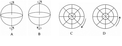 2、单选题 下列关于地球自转方向的图示,正确的是 3、单选题 我国下列地区中太阳辐射能最多的地区是 4、单选题 读地球自转线速度和角速度图,回答下列小题。 |