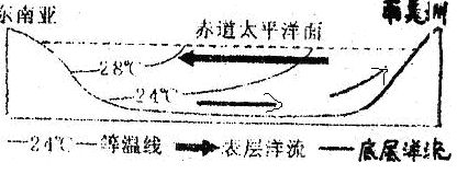 (1)南半球赤道附近表层海水运动是在东南信风作用下形成的南赤道暖流。