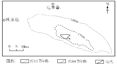 4、单选题 艾丁湖的存在对吐鲁番盆地绿洲的维持具有重要作用。下图是1万多年来艾丁湖变迁示意图。读下图回答下列各题。