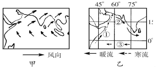 (1)乙图中①②③处可能形成渔场的是____________,成因是______________ ___。(4分)