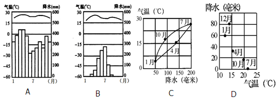 【小题1】广州位于我国东南地区,为亚热带季风气候,夏季高温多雨、冬季温和少雨。A图全年高温多雨,为热带雨林气候;B图全年高温,分明显干湿两季,为热带草原气候;C图夏季高温多雨、冬季温和少雨,为亚热带季风气候;D图夏季炎热干燥、冬季温和多雨,为地中海气候。