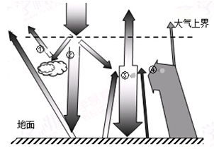【小题1】图中①为云层反射,②为到达地面的太阳辐射,③为大气逆辐射,④为大气吸收的地面辐射;全球气候变暖因大气中二氧化碳含量上升,使大气吸收地面辐射增强,大气逆辐射增强,所以C、D正确,全球气候变暖与①②无关。