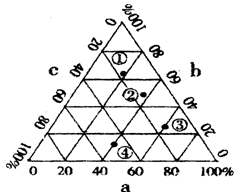 小题1:本题考查工业区位选择。石油加工工业属于市场指向型工业,对市场的依赖程度高。c表示市场,三角坐标图要找准平移轴,四点中④的市场所在比重最高,达到40%以上。所以本题选择D选项。