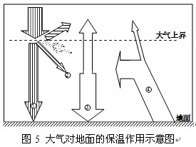 小题3:大气补偿地面辐射损失的热量是通过大气逆辐射,因为③。