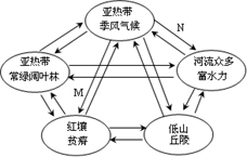 本题解析:1.根据图中信息可知,M环节是由气候影响土壤,根据题意可知,该地是我国南方低山丘陵地区,所以符合的是C项。