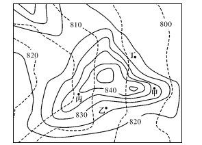 2、单选题  下图为黄土高原局部黄土分布等值线图,实线是黄土表面等值线,虚线是黄土底面(基岩表面)等高线(单位:米)。读图回答下列小题。