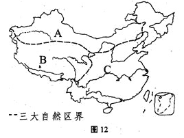 5、单选题 图12为我国三大自然区分布简图, 读图完成问题。