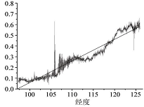3、单选题 下图为我国某省区植被覆盖度(数值越大,表示植被覆盖状况越好)沿经度变化示意图。