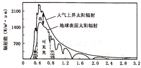 3、单选题  读下图“太阳辐射光谱示意图”,完成下列问题。