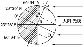 参考答案:(1)23°26′N?(2)日出?(3)0°? ABC