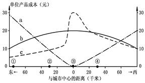 本题解析:小题1:本题考查读图分析能力(城市土地利用)。第1题,土地成本的基本分布规律:市中心最高,之后向外递减,且交通便利的地方,地价较高,故判断为c线;运费的分布特征:距市中心最近,运输距离最近,故运费最低,逐渐向外递增,故判断为a线;