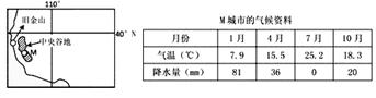 参考答案:A 本题解析: 本题难度:一般 2、单选题  下图为某地相关气象资料示意图。读图回答1~2题。  参考答案:1、A 本题解析: 本题难度:一般 3、单选题  中央谷地位于海岸山脉和内华达山之间,是美国重要的水果和蔬菜生产基地。M为中央谷地中某城市,该城市的平均海拔为52米。据此回答问题。 |