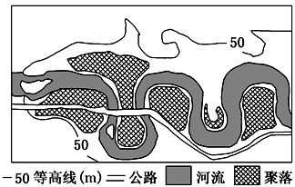 A.这里山高水深,位于河流上游 B.此处河流曲折,不易发生洪涝 C.河流总体自东向西流 D.该地区聚落沿河流分布于河流凸岸一侧 |