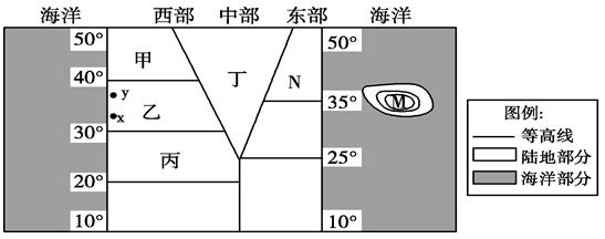 (1)甲乙丙丁四地中与N处自然带相同的地区是      ,N处的自然带名称最有可能是      。(4分)