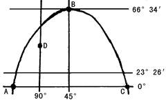 5、单选题 图中AB弧线是昏线,BC弧线是晨线,读图完成问题。