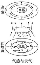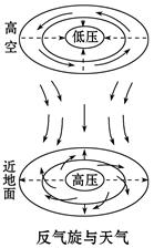 点评:本题结合图示考查对热力环流的判断及气流的运动方向,试题难度中等,解题关键是掌握热力环流的形成原理。