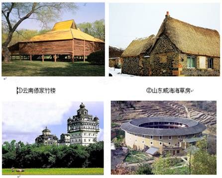 1.有关图中建筑特点与地理环境的关系,叙述正确的是2.上述民居建筑风格最能体现地域文化的开放性特点的是