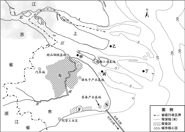 4、综合题  地处长江入海口的上海市,是我国重要的工业基地,近年来城市用地日益紧张,滨海地带的开发成为热点。根据下列材料,结合所学知识,完成(1)-(5)题。