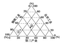 1、单选题 德国鲁尔区从20世纪60年代到80年代,对经济结构进行了大规模的调整,结合鲁尔区产值结构图(图中①、②分别表示1958年和1995年的产值结构)及所学知识,完成问题。 小题1:图中反映鲁尔区经济结构调整前后的变化特点是? ( )