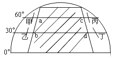 1.甲、乙、丙、丁洋流流向及对沿岸气候影响正确的是2.a、b、c、d气候特征叙述错误的是