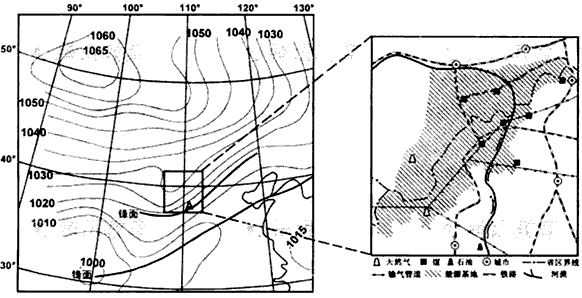 4、综合题 下图是1月某时地面天气图(单位:百帕)。读图回答问题。