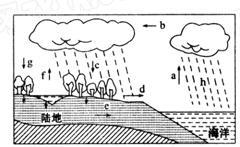 小题3:d环节为地表径流,将陆地水输送到海洋。湘江为外流河,最终注入海洋;而C选项为水汽输送,将海洋水汽输送到陆地。所以本题选择A选项。
