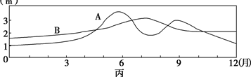 4、单选题 某研究性学习小组调查了我国东部河流某河段的情况,并绘成该河段示意图甲、EF河段河床剖面示意图乙和A、B两水文站测得的水位变化图丙。据此回答22~23题。