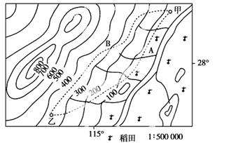 参考答案:A 本题解析:试题分析:比例尺相同,图上疏密程度相同,则等高距越大,坡度越大。 本题难度:一般 2、综合题 (10分)读我国某区域等高线地形图(虚线表示拟建的公路线),回答下列问题。