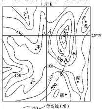 4、单选题 一群旅游爱好者到祖国的大好河山去旅游,下图为他们到达30°N附近一个地区的等高线地形图,图中等高距为100米。读图回答题。