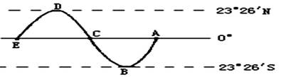 (2)元旦时太阳直射点在 点和 点之间,并继续向 (南、北)方向移动。