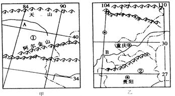 参考答案:(1)东北——西南走向???(2)B??(3) 本题解析:本题考查我国的区域环境。(1)利用经纬网的方向。(2)利用经线的距离,重庆和贵阳的距离在图上约与经线上3个纬度距离相当,故计算3*111KM。(3)结合经纬度和周边的重要地理事物,如山脉、城市等判断①表示塔里木盆地;②表示云高高原。(4)A表示塔里木河,主要以冰川融水为补给;B表示长江,主要以降水补给。 本题难度:一般 5、单选题 读下面两幅图,回答1~3题。??? 参考答案:1. D 本题解析:第四纪冰川主要影响北半球的中高纬度,在北美洲主要影响五大湖周围及以北地区;上图中的农业模式应为乳畜业,而美国的乳畜带分布在靠近五大湖的C区;C区是美国工业发展最早的地区,形成两大城市群带,但纬度较高,热量相对不充足。 本题难度:困难 |