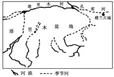 1.楼兰古城在两千多年前曾是塞外水乡,林草繁茂的绿色王国和丝路重镇。楼兰古城消失的最主要原因是2.图示地区有我国重要的商品棉基地,它可能位于塔里木盆地的