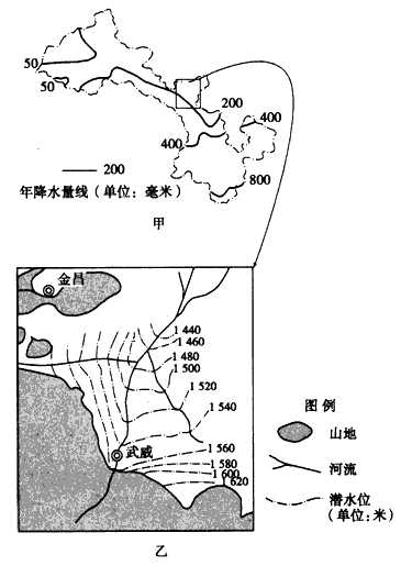 5、单选题  下面的图甲是“我国某省年降水量分布图”,图乙是“该省某地区a河水系示意图”。读图回答1~2题。