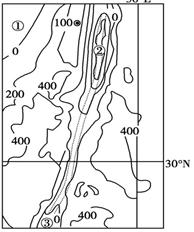 A.①③ B.②③ C.①②③ D.①③④ 参考答案:小题1:D小题1:A 本题解析:本题考查世界区域地理概况。小题1:结合图示的纬度位置和地理轮廓判断,①表示,马达加斯加岛;②表示台湾岛;③表示澳大利亚;④表示英国;④地受盛行西风影响,西侧为盛行西风的迎风坡降水量丰富,而东侧为背风坡,降水少,而其他三地都主要受偏东风影响。 本题难度:简单 3、单选题  该图为某区域等高线地形图。读图完成问题。  |