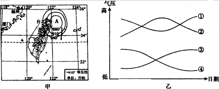 2、若A天气系统向西移动经过福州,图乙中四条曲线最能反映福州气压变化过程的是