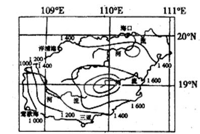 1、单选题 下图为我国某岛屿年平均降水量(毫米)分布图,读图回答下列各题。