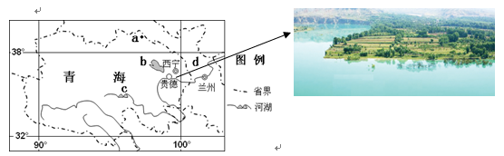 本题解析:试题分析:小题1:读图,根据省区轮廓判断,a处于祁连山区,不是阿尔泰山区,A错。b湖是青海湖,为咸水湖,B对。c湖位于青藏高原,夏季气温低,不会是高温,C错。d省区是甘肃,简称甘或陇,D错。