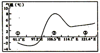 【小题1】根据经纬度位置,①地为青藏高原,②地为四川盆地,③地为长江中下游平原。本月三地气温都低于10°,应为冬季,C错误;①地地势高,大气稀薄,大气的削弱作用和保温作用较弱,气温日较差大,②地处在盆地中,大气湿度大,气温日较差小,A错误;①地地势高,夏季气温低,但冬季受冷气团影响小,气温较高,气温年较差较小,③地处于平原,夏季气温高,气温年较差较大,B正确;①地大气稀薄,大气逆辐射弱,②地大气湿度大,大气逆辐射较强,D错误。