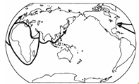 A.地形类型不同 B.气候类型不同 C.海陆位置不同 D.纬度位置不同 |
