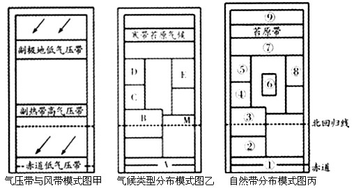 1、若在图丙中,有一座足够高的山,则陆地自然带最多的是
