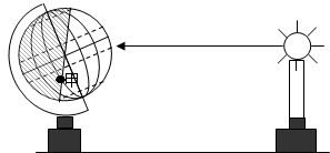 1、单选题 将一盏灯放在桌子上代表太阳,在电灯旁放置一个地球仪,拔动地球仪模拟地理运动(但不移动地球仪)。读图回答问题。