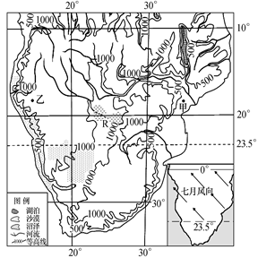 (3)图中R区域的两片沼泽在不同季节会呈现离合变化的现象,请分析原因。(4分)