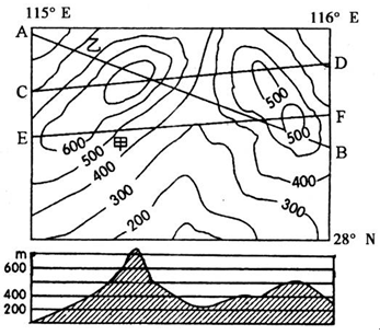 (1)下面的地形剖面图是依据等高线图中的那一条剖面线画出的?_____________。