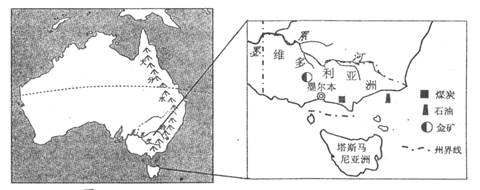 材料一:维多利亚州位于澳大利亚大陆东南部,北部以墨累河、西部以经线和其他州分界,植被覆盖率高达30%,素有“花园之州”的美称,面积约占全国3%,而人口却占全国1/4 以上,首府为墨尔本。